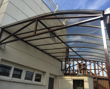 Toldos e coberturas em Policarbonato compacto e aveolar, Toldos em lona, fixo e retrátil